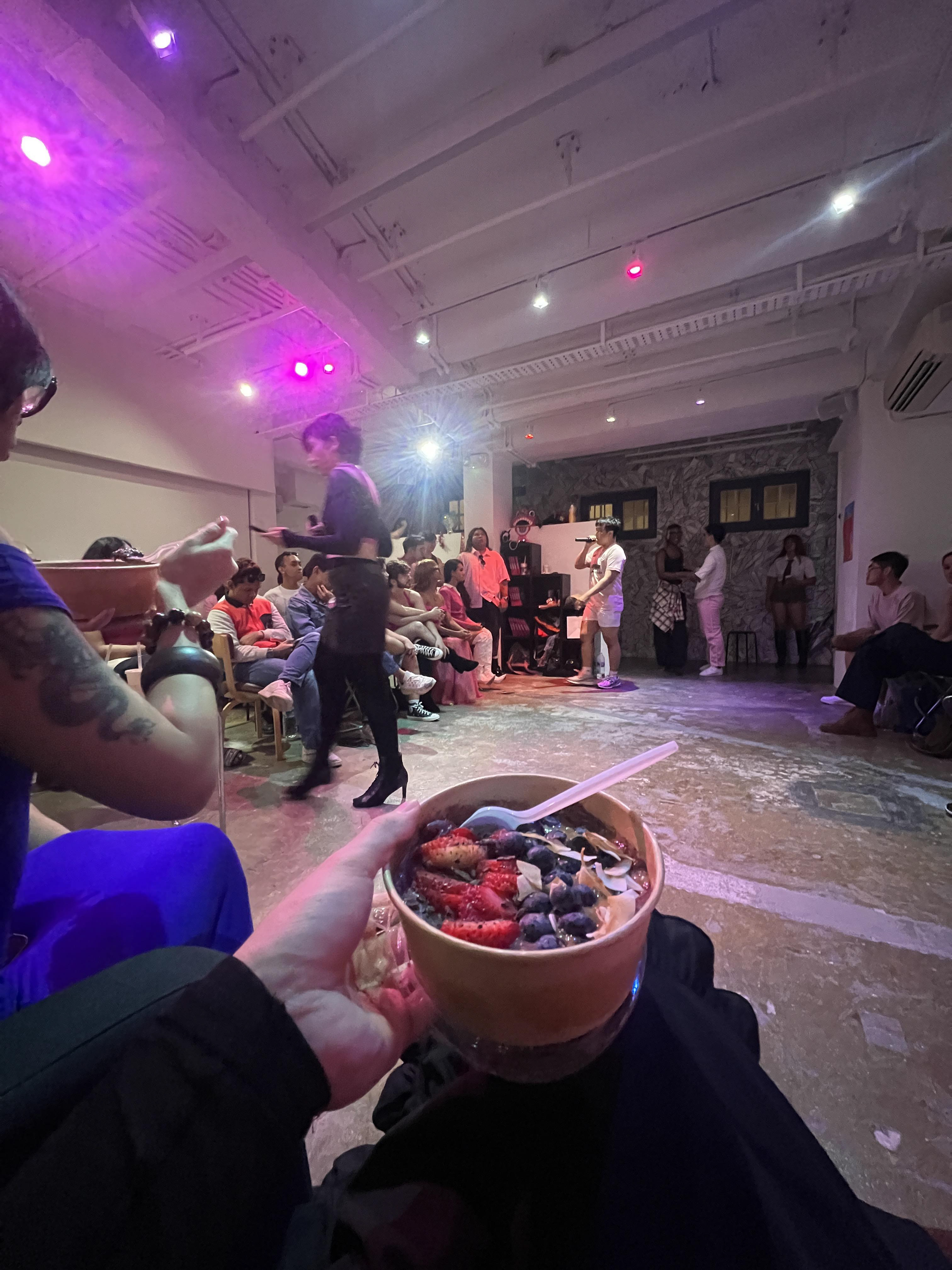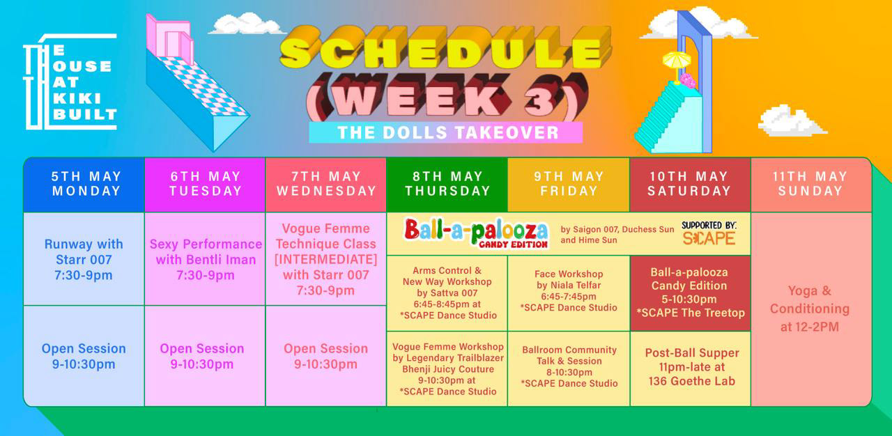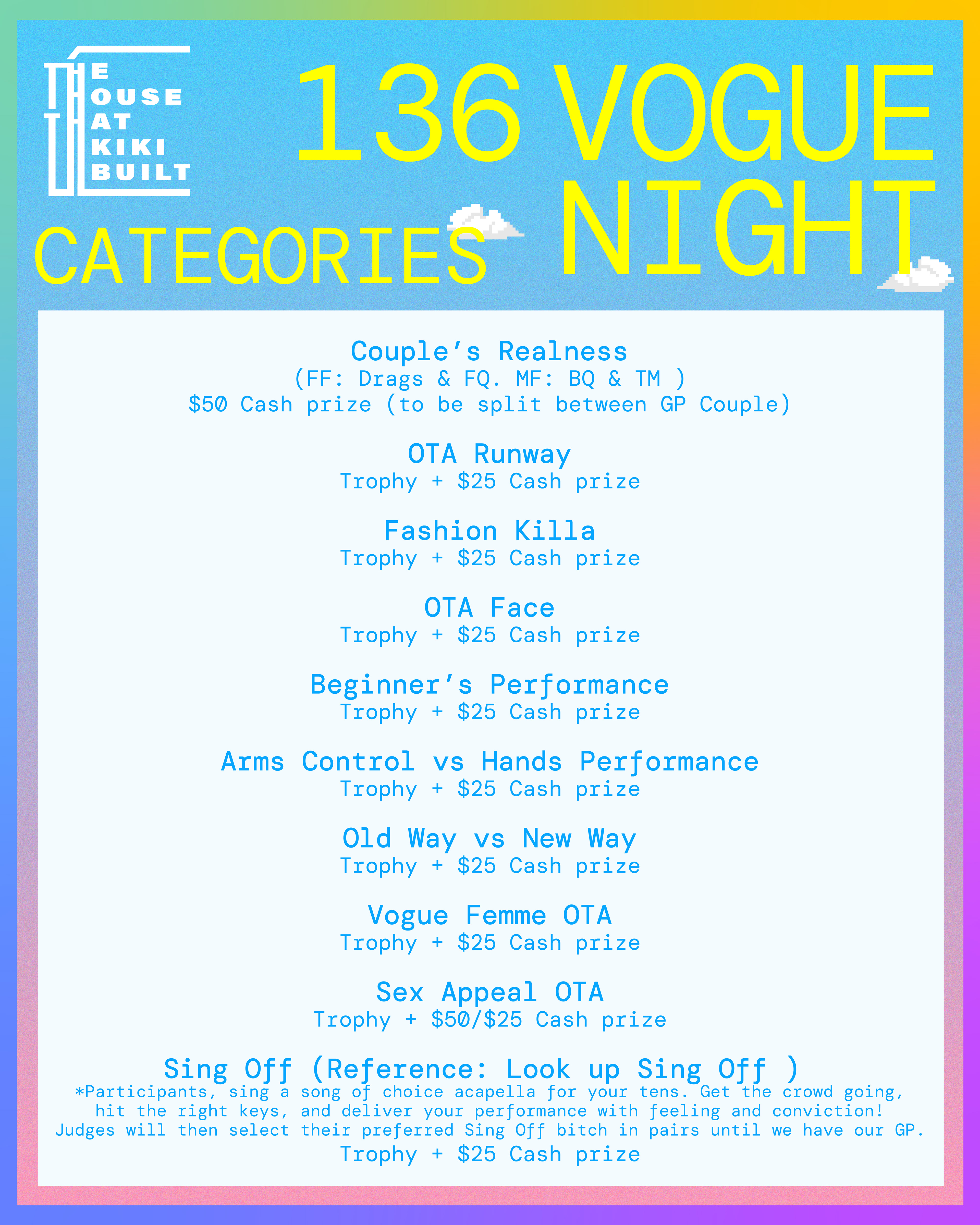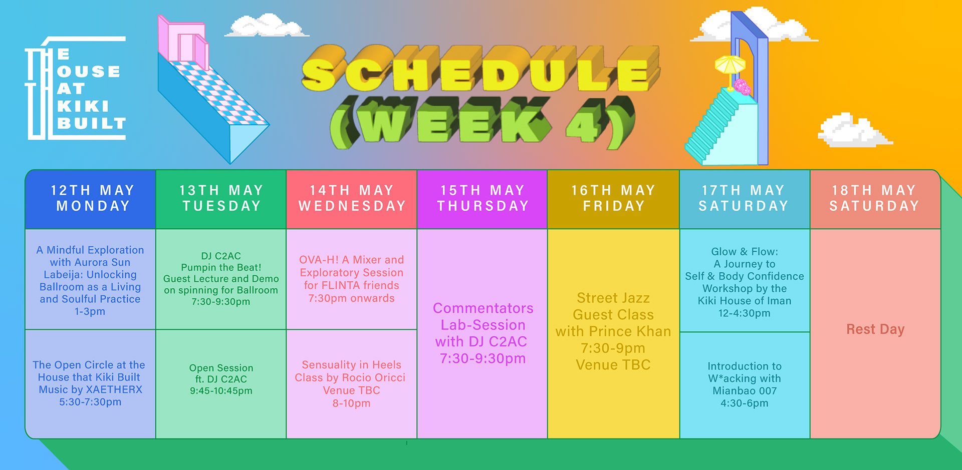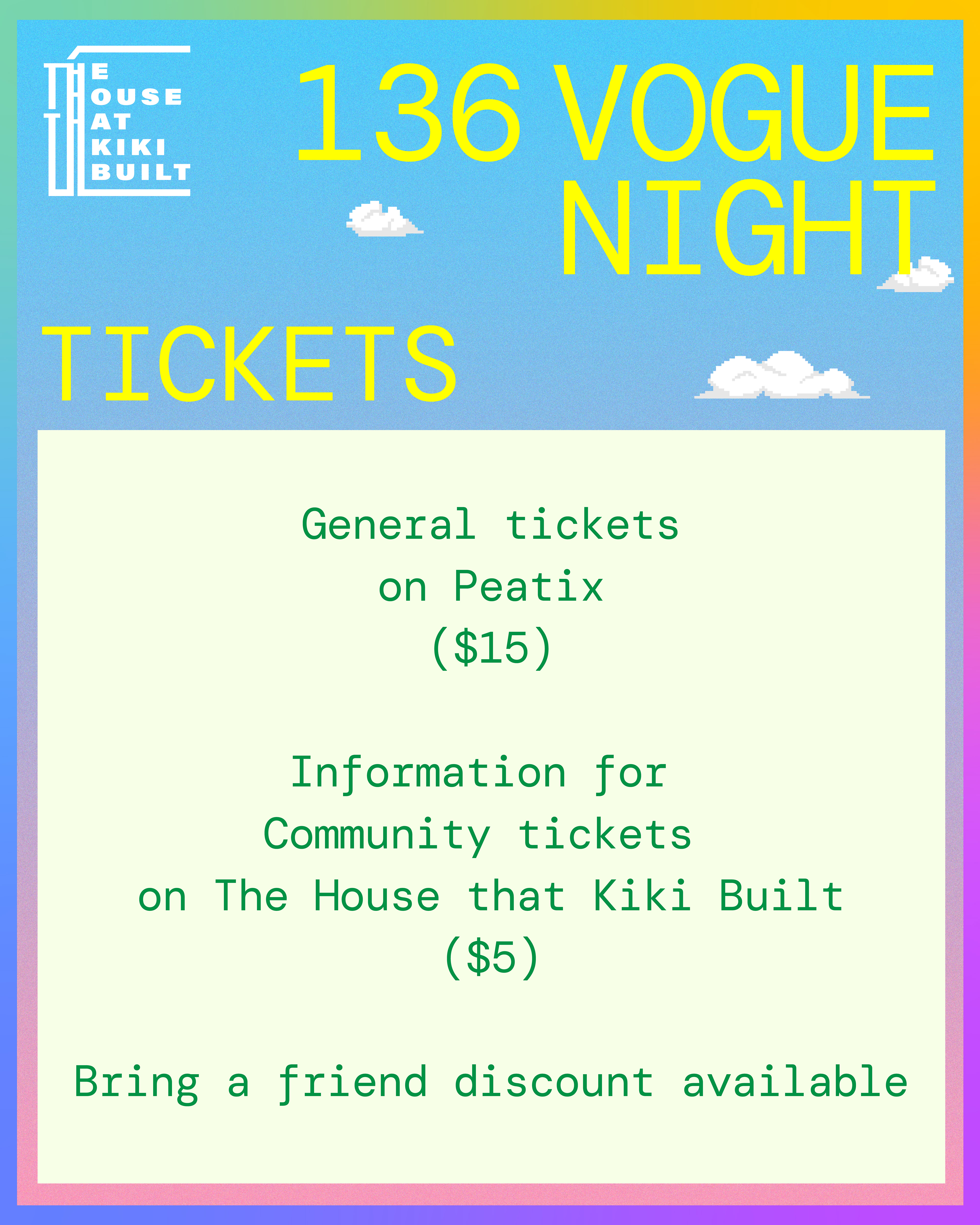 THE HOUSE THAT KIKI BUILT is a process-based transdisciplinary project invoking underground Ballroom practices, aesthetics and performance. Underground Ballroom culture originated in Harlem, New York City by the Black and Latinx queer and trans community in the late 60s, and has now expanded globally. Kiki is a derivative of the major Ballroom scene which focuses on youth-engagement, advocacy and equitable access to Ballroom culture and functions. The Ballroom House is an alternative kinship structure; chosen families constructed by House Parents and Children, providing an informal but deeply committed infrastructure of care, safety and mentorship. Extending the metaphor of the House, the project harnesses the nexus of creative labouring within the underground Singaporean Ballroom scene and transforms 136 Goethe Lab into a community clubhouse for the community. While in residence, the community gathers as a research and generative network through facilitated practice sessions, category study, discussion and interview sessions with overseas Ballroom figures, contributing to shared understandings of Ballroom’s colourful histories and present(s). We seek to dive into the epistemologies of situated knowledge in Ballroom culture, deepen our craft and artistries in the expressive modes of Vogueing, fashion-making & presentation, and Ballroom-specific musicking as communal praxes of self-affirming glamour-as-resistance. We will programme several public outreach programmes for new friends and allies who are interested to learn more about underground Ballroom and our local scene and to pick up the many skills that underground Ballroom has gifted to her initiates. present(s). Artist Residency Lead by Shayus (Ada) Sharif Visuals Designed by Fel (Felicia) Utama